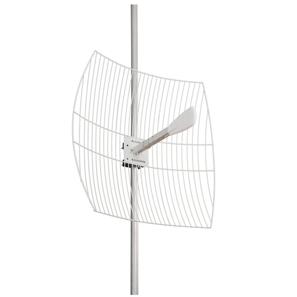 Параболическая широкополосная направленная MIMO антенна KNA21-800/2700С с коэффициентом усиления 21 дБ предназначена для работы с 3G, 4G, LTE модемами, роутерами и другим оборудованием, работающим в частотном диапазоне 800-2700 МГц.